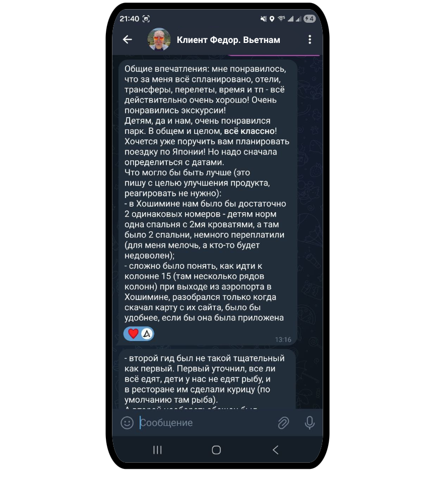 Мы на связи на протяжении всего путешествия и помогаем даже с небольшими вопросами и сложностями.